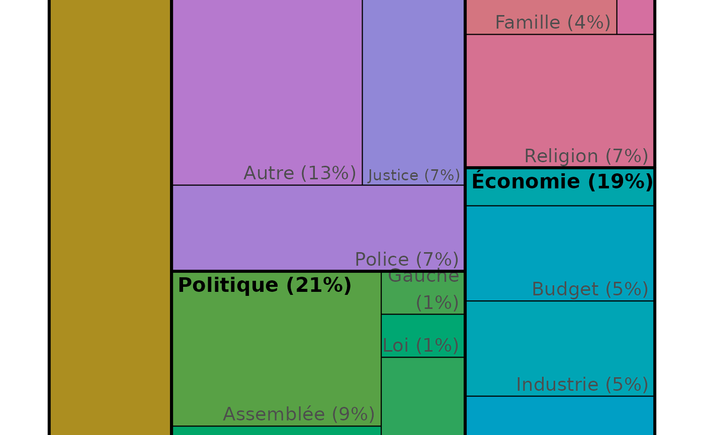 Plot a treemap of thema and classe of segments